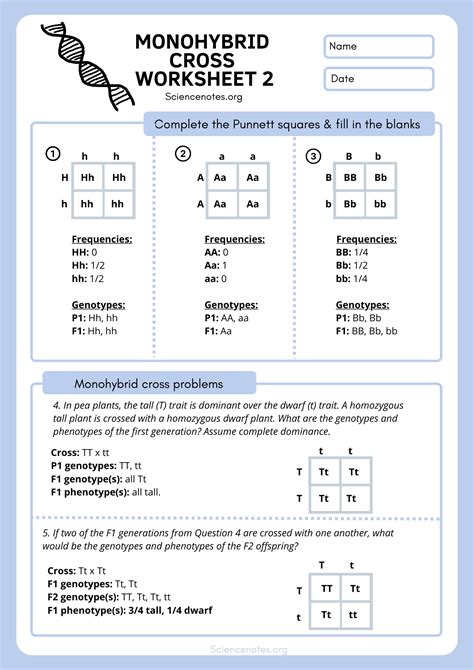 Patterns Of Inheritance Problems Monohybrid Crosses Worksheets Answers