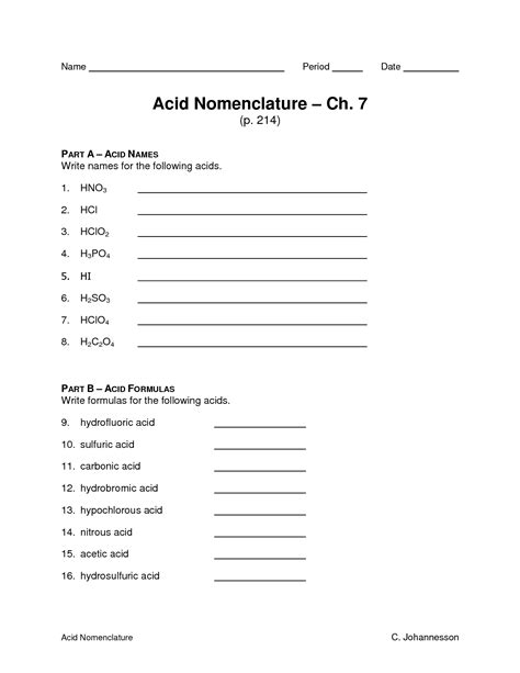 Web Practice Worksheet Naming Acids Class Set Write Formulas For The Following Sulfunc Acid Permanganic Acid Carbonic Acid Èphosphorous Acid 'Hydrofluortc Acid.