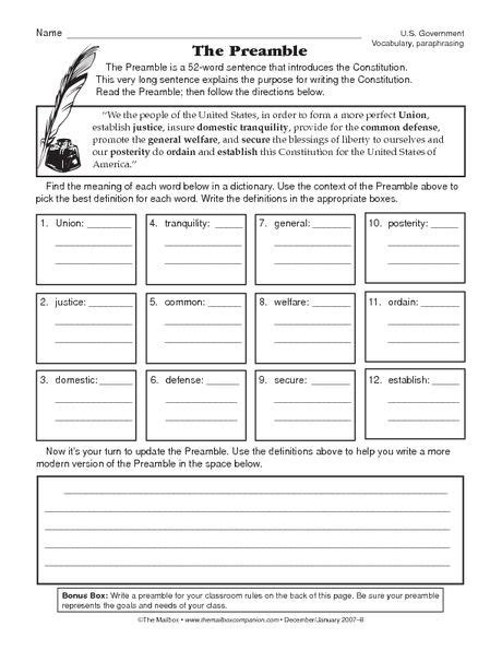 Preamble Worksheets. Web the preamble to the constitution was written in 1787 when our new nation needed a federal government that would oversee and unite our thirteen states. With this worksheet, students will learn about the history and purpose of the preamble of the constitution of the united states of.